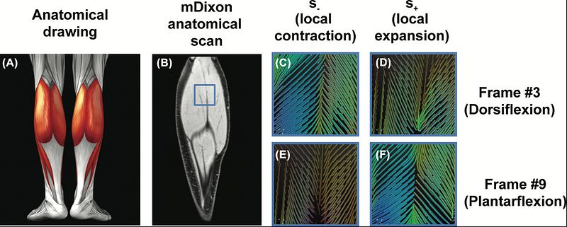 The ability to non-invasively image skeletal muscle with a large field-of-view during active contraction is of key interest to better diagnose and manage treatment of patients with muscle disease, as well as to better understand the link between muscle structure and function. I have developed the first acquisition and image reconstruction strategy based on phase contrast MRI to measure 4D velocity and strain rate values in muscles during contraction. Thanks to the use of undersampling and compressed sensing reconstruction, this was achieved in a clinically feasible scan time. Furthermore, I was the first to exploit Oscillating Gradients diffusion MRI for skeletal muscle evaluation, and showed its feasibility for imaging muscle fibers during isometric contraction and for detecting changes in cellular size.